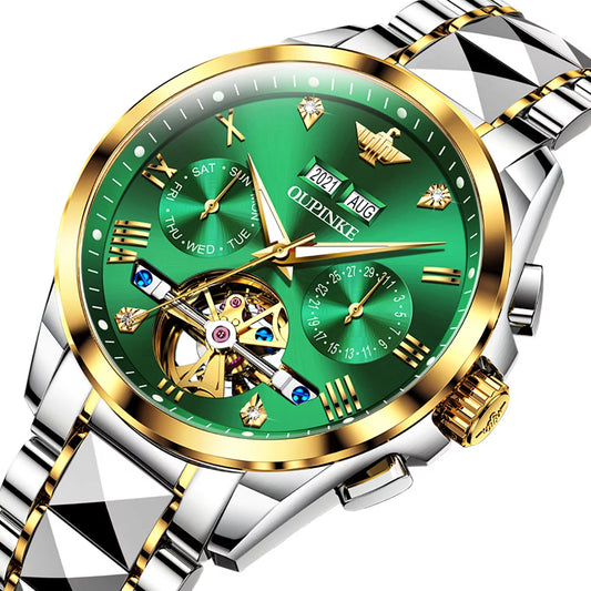 Automatic Watches for Men, Diamond Skeleton Self Winding Luxury Dress Mens Watch Sapphire Crystal Tungsten Steel Band Luminous Waterproof Reloj, Gifts for Men