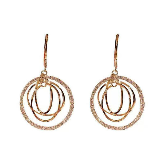 Silver Plated Gold Crystal Circles Earrings Hoop Drop Women Jewelry Lab-Created