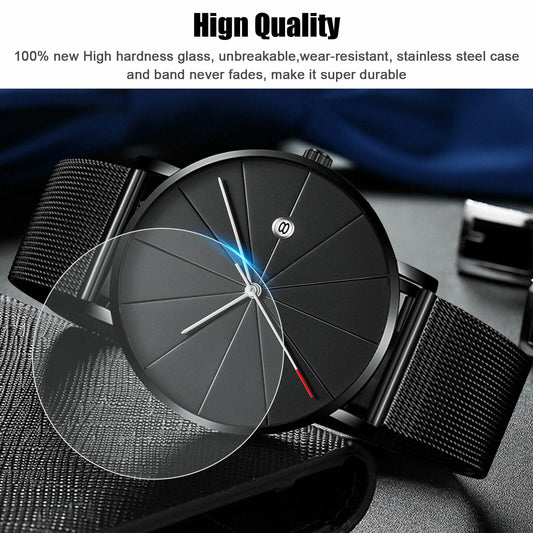 Trendy Men'S Ultra Thin Minimalist Quartz Watch Stainless Steel Sport Wristwatch